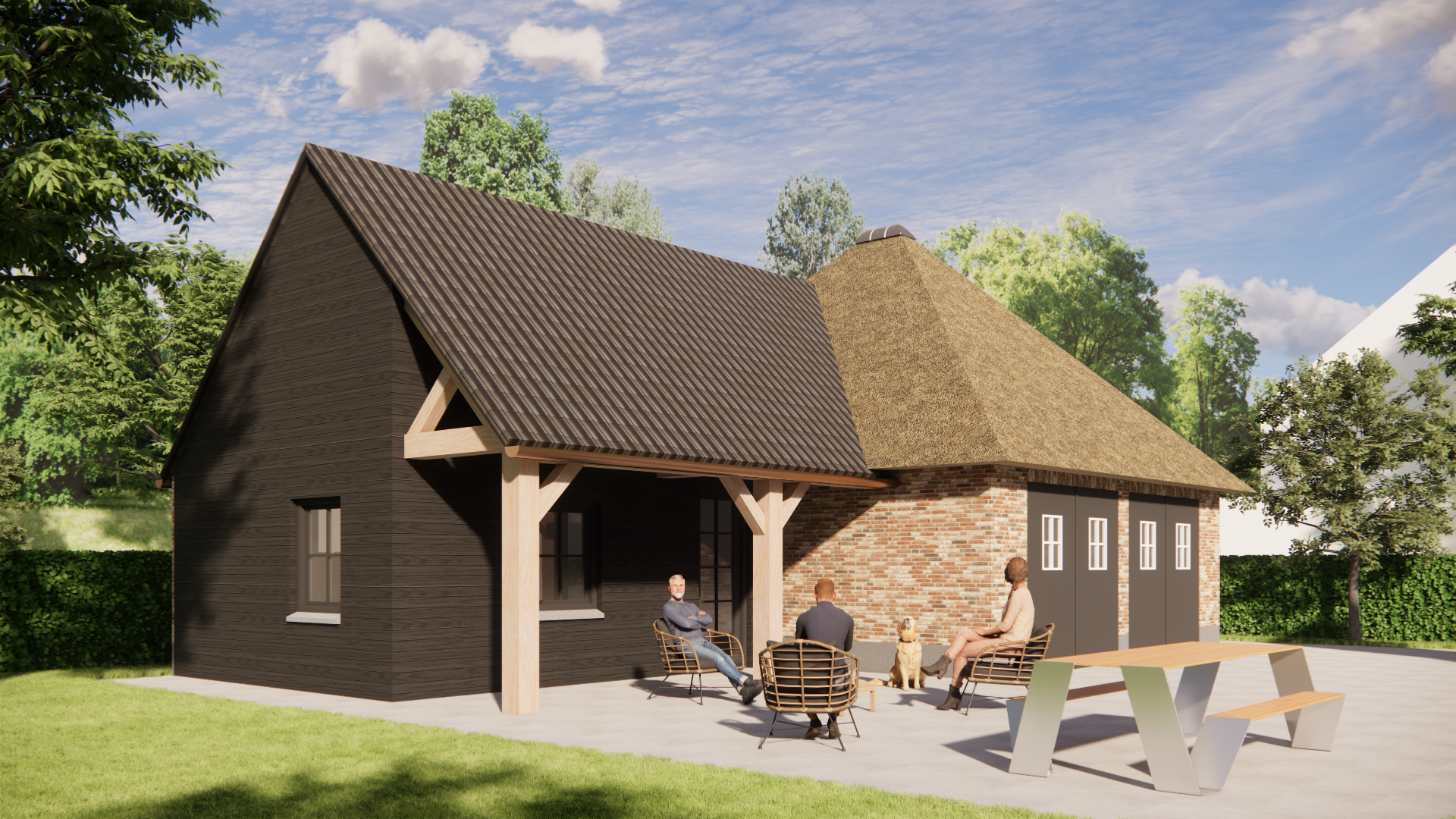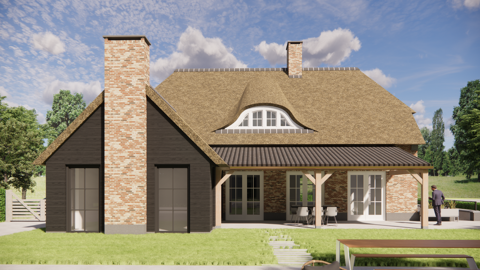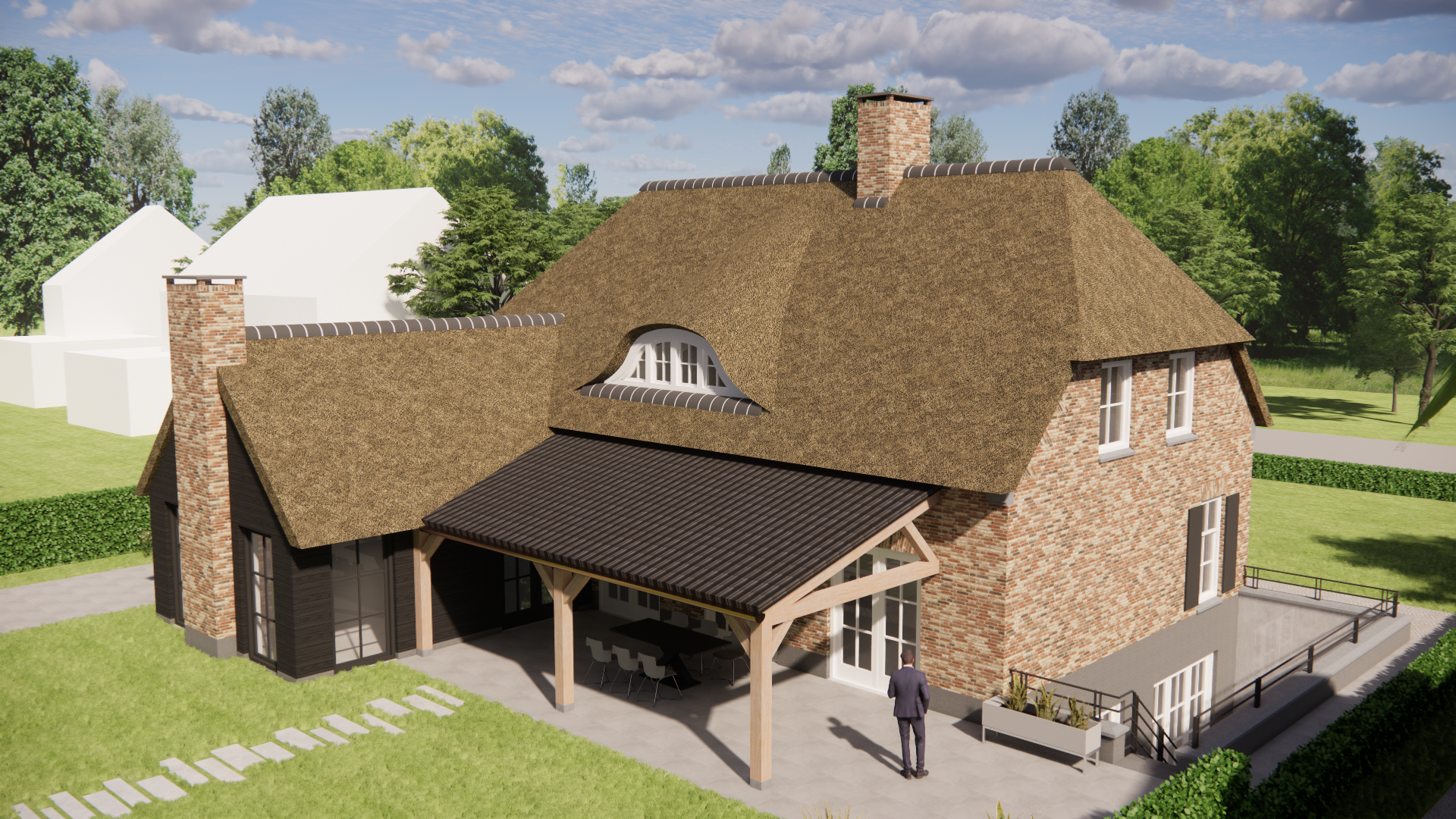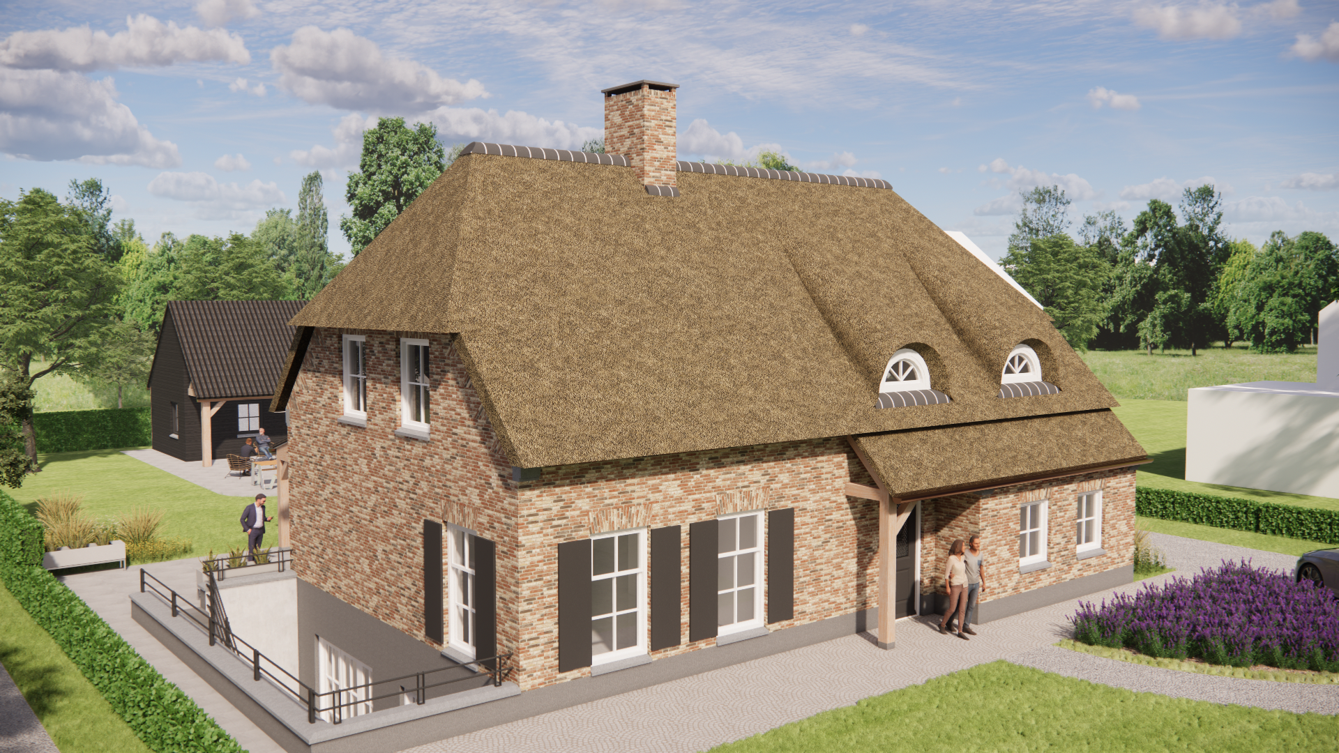 Boerderijwoning met rieten wolfsdak en houten accenten