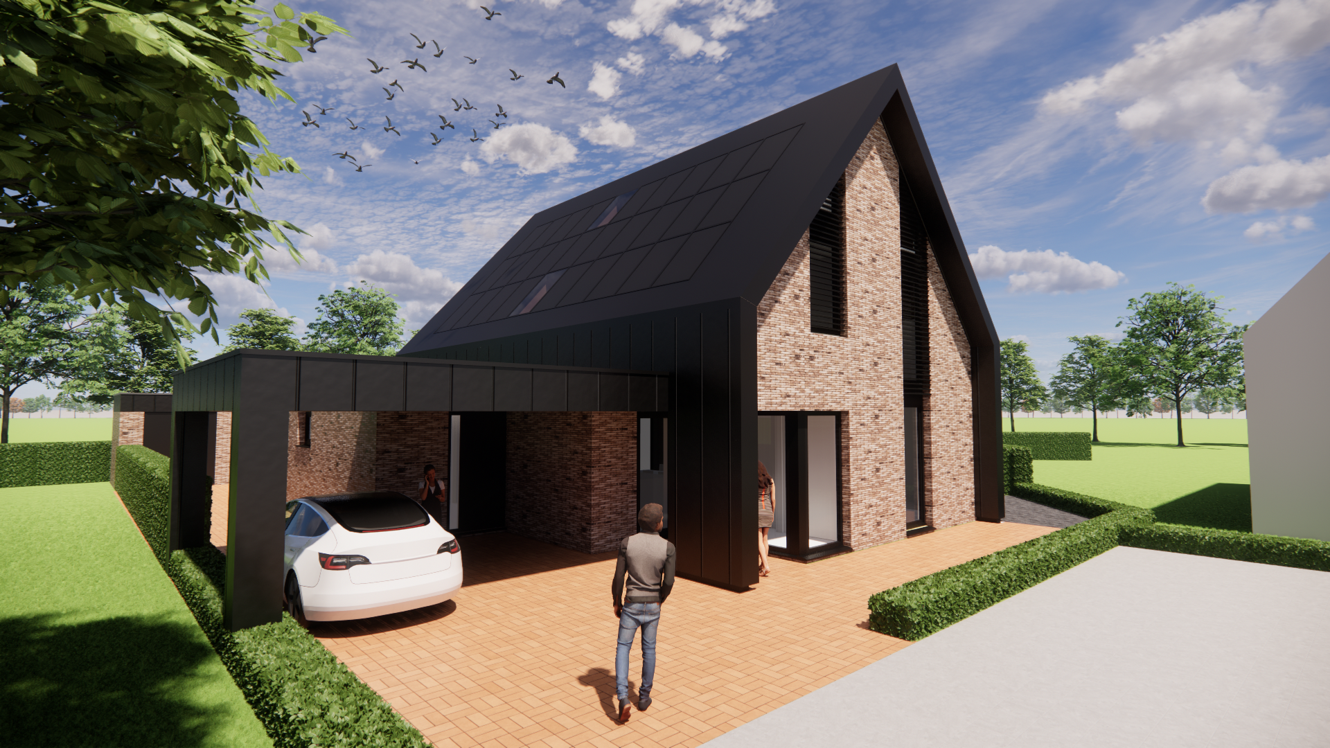 Het ontwerp besteedt bijzondere aandacht aan buitenbeleving met een ruime overkapping, overdekt terras en carport. Zo biedt de woning niet alleen binnen, maar ook buiten volop ruimte en comfort, het hele jaar door.