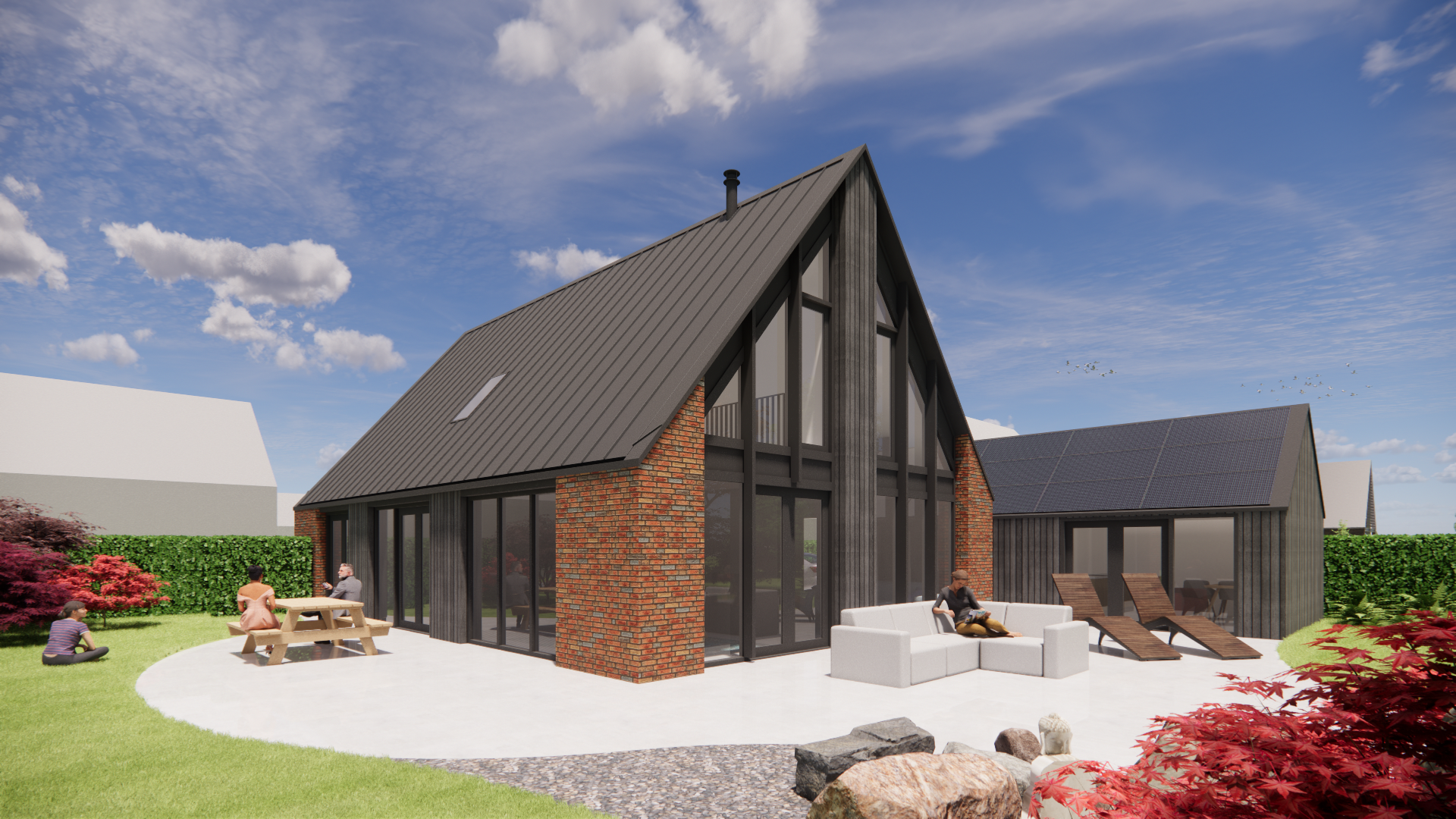 Eigentijdse schuurwoning met metselwerk en houten gevelaccenten