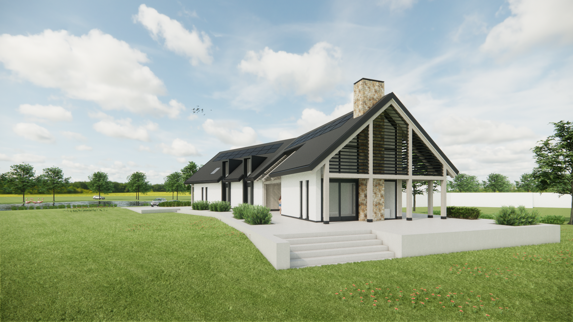 Met vier slaapkamers, twee badkamers en royale leefruimtes biedt het ontwerp een ideale balans tussen gezelligheid en ruimte. De ruime living van bijna zeventig vierkante meter beschikt over een haard en een indrukwekkende vide, waardoor extra licht, ruimte en beleving ontstaan. In het ontwerp is bewust gekozen voor verschillende plekken om te eten, koken en ontspannen, waardoor iedere ruimte zijn eigen sfeer en functie krijgt.