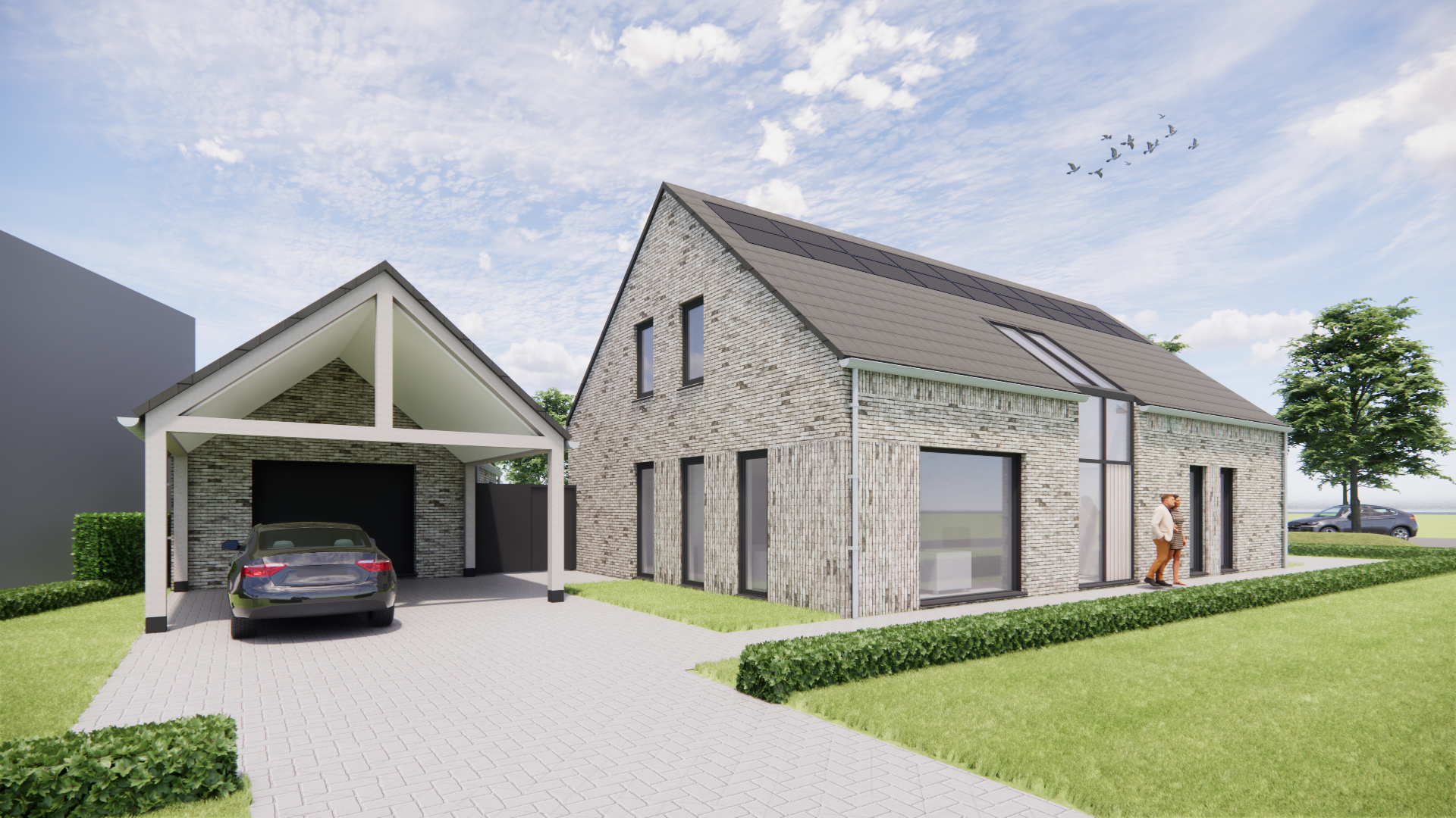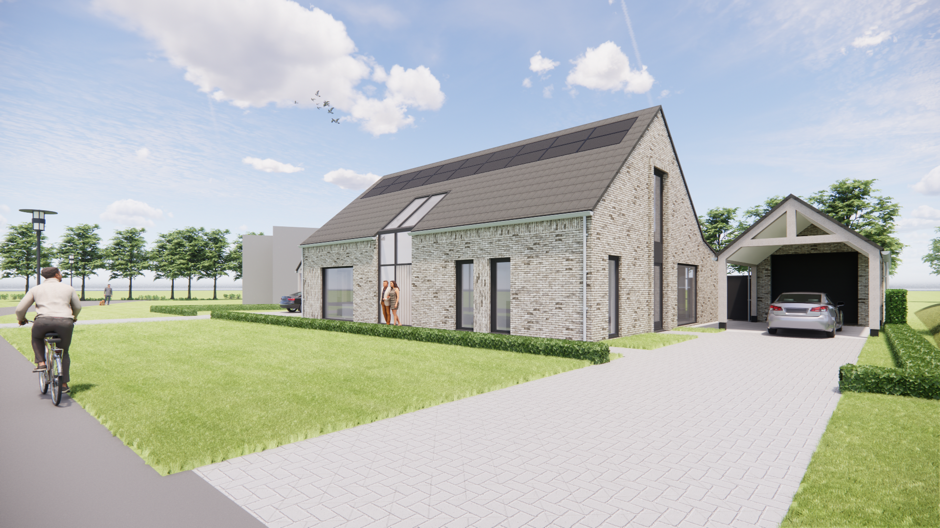 In dit eigentijdse ontwerp komen comfort, privacy en verbondenheid samen. De woning is levensloopbestendig ontworpen en biedt ruimte voor mantelzorg, zonder in te leveren op uitstraling of woongenot. Door de combinatie van metselwerk, een vlakke dakpan en verfijnde architectonische details zoals diepe neggen en kozijnen die doorlopen in het dak, krijgt het geheel een strakke en tegelijk warme uitstraling.