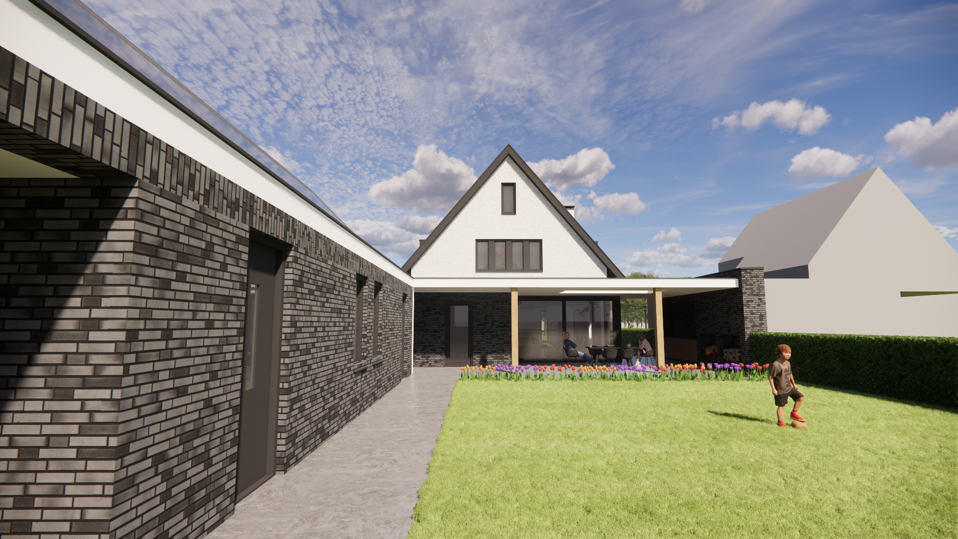 De overkapping functioneert als een overdekt terras, zodat je ook bij minder weer fijn buiten zit. De carport voegt dagelijks comfort toe en houdt de auto dichtbij en droog. Zo ontstaat een vanzelfsprekende verbinding tussen wonen, werken en ontspannen, met aandacht voor praktische details die je elke dag merkt.