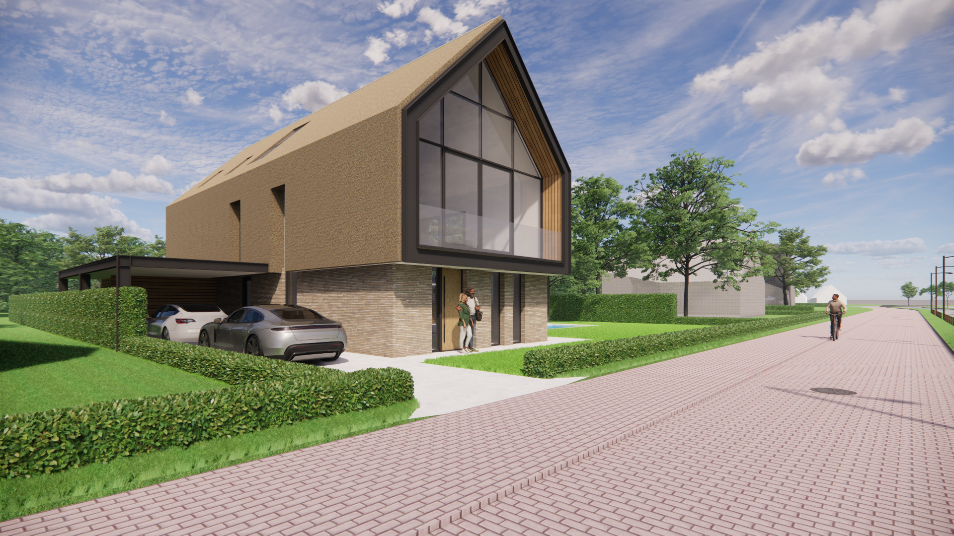 Ook buiten is het genieten: een overdekt terras, balkon en carport zorgen voor extra comfort. De overdekte entree verwelkomt je op een gastvrije manier en maakt de woning tot een geheel. Elk detail is doordacht ontworpen, van de koekoek in de kelder tot de schoorsteen die het silhouet van de woning versterkt.