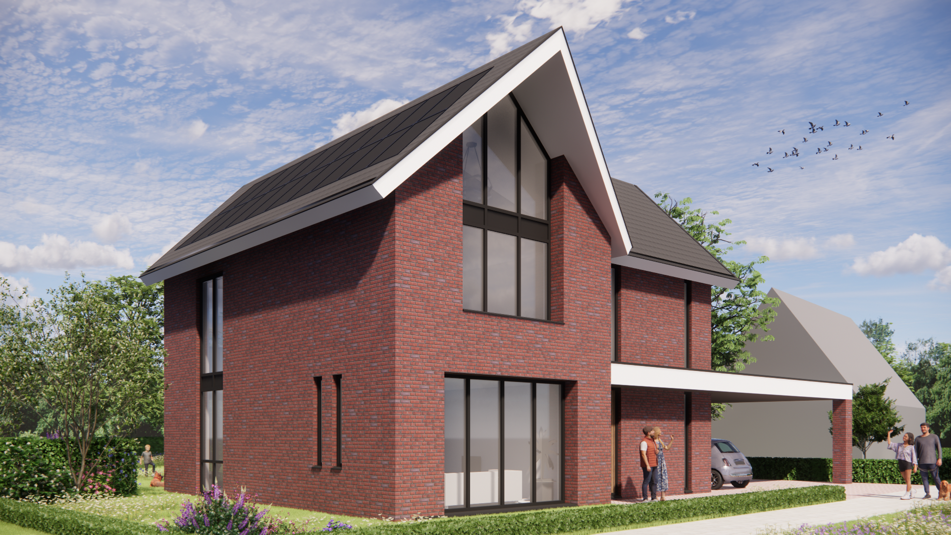 De woning is ontworpen met oog voor comfort en gebruiksgemak. Denk aan een ruim kookeiland als hart van de leefruimte, een aparte werkkamer op de begane grond en een vaste trap naar de zolder. De inloopkast en twee badkamers maken het plaatje compleet. Buiten zorgen de overdekte entree, carport en het terras onder de kap voor extra gebruikscomfort.