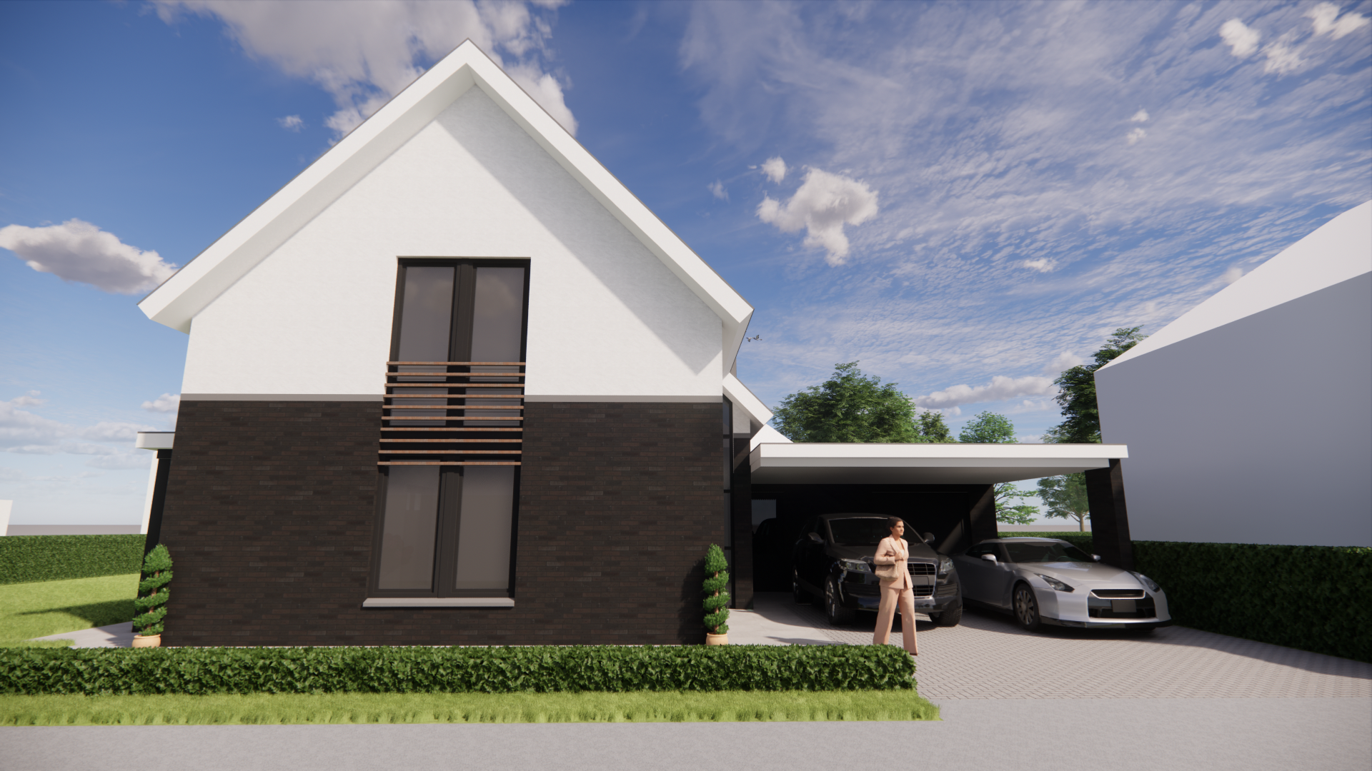 Deze vrijstaande woning is modern en tijdloos tegelijk. De hoofdvorm met zadeldak en de traditioneel uitgevoerde bouw geven een rustige, betrouwbare uitstraling. Het metselwerk vormt een stevige basis, terwijl de vlakke dakpannen zorgen voor een strak silhouet.