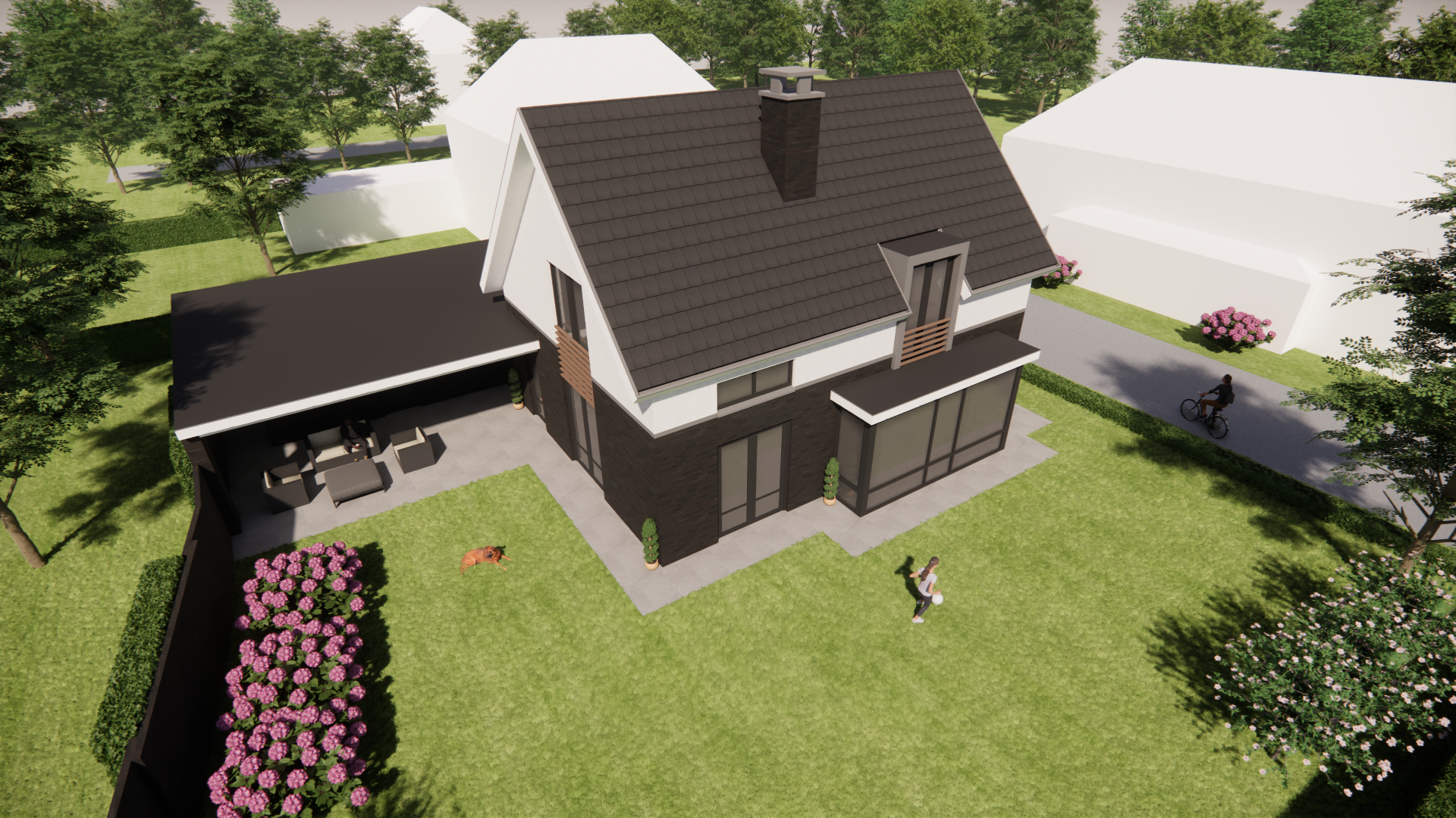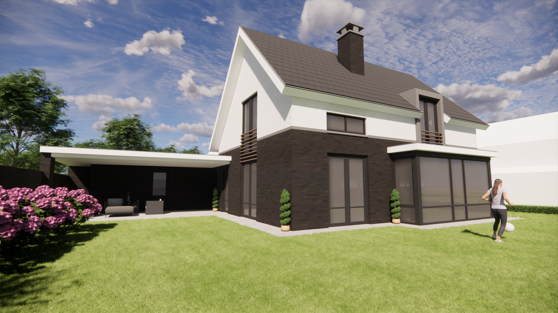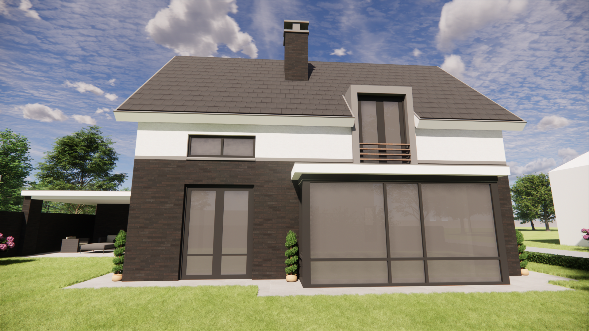 De kwaliteit zit in de details. Een dakkapel en erker voegen extra ruimtebeleving toe. De betimmerde goot en het dakoverstek geven het volume finesse. Met een pleisterwerk accent en buiten shutters ontstaat een subtiel spel van textuur en ritme. De schoorsteen maakt het geheel af met een herkenbaar, huiselijk element.