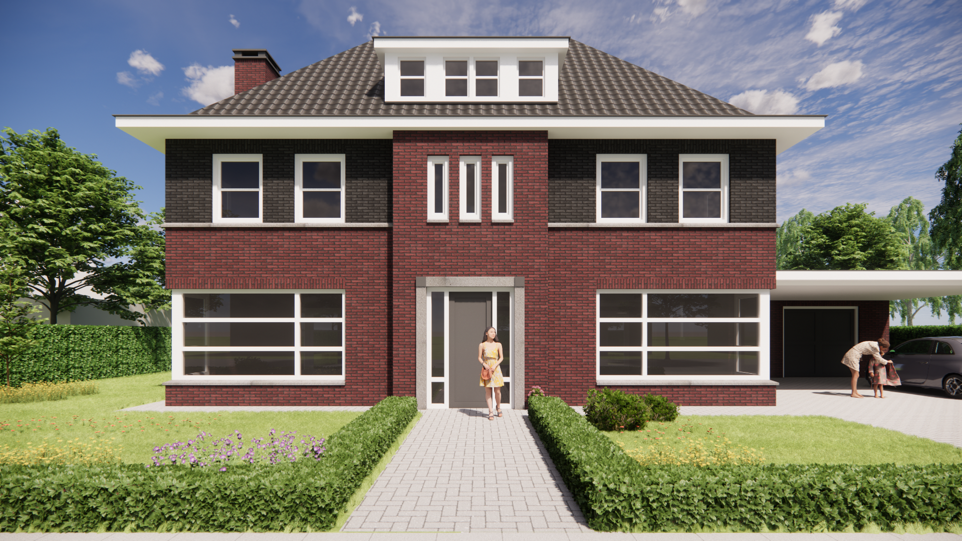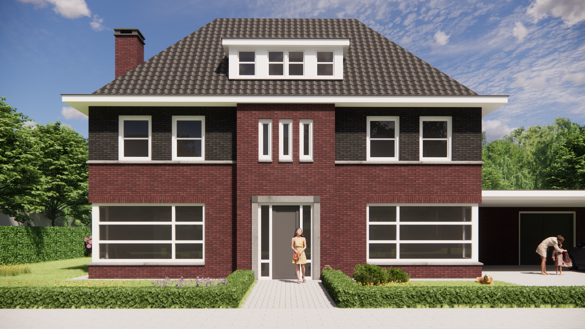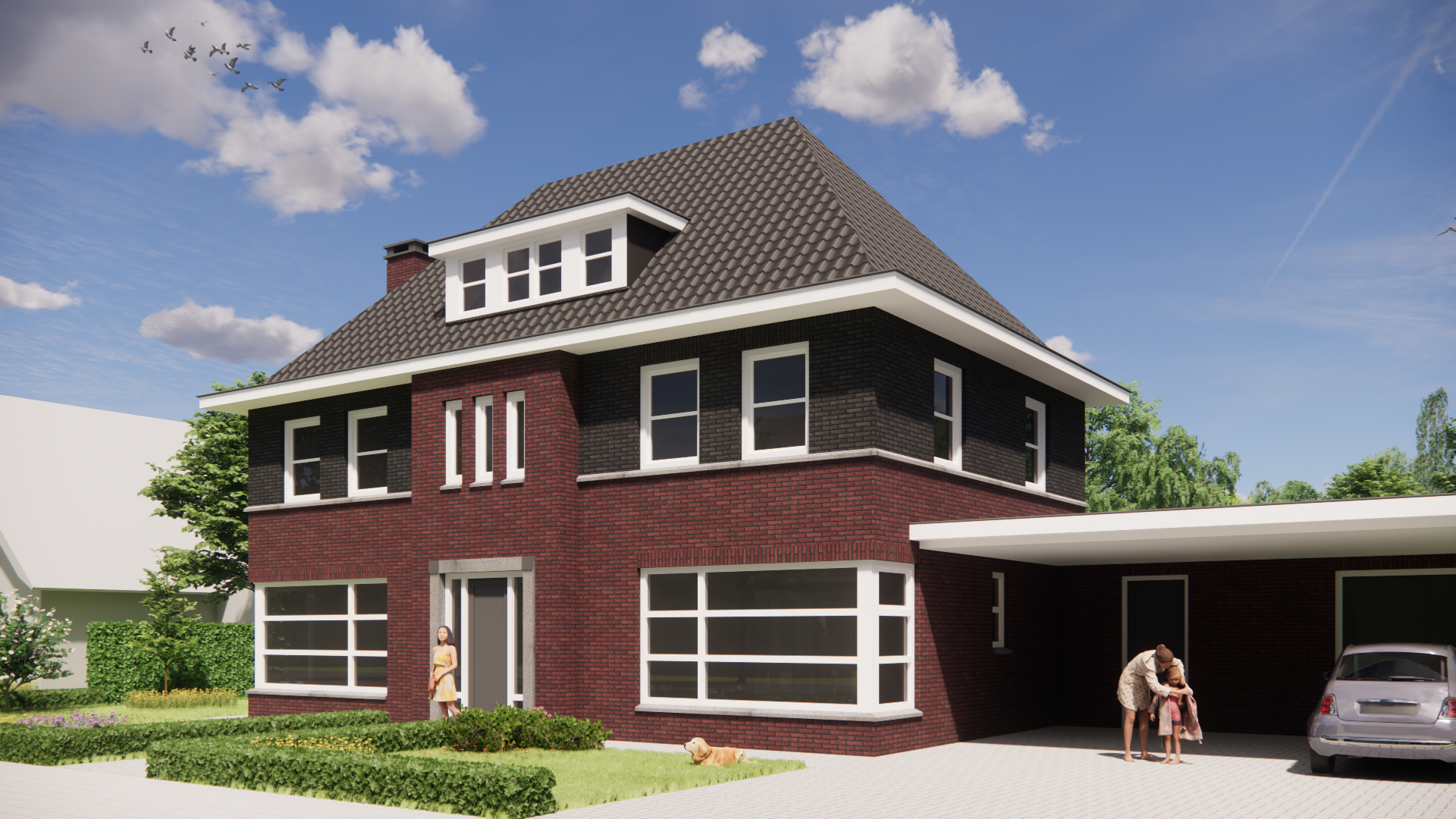 Deze nieuwbouw notariswoning ademt de sfeer van de jaren 30. Het metselwerk, het krachtige schilddak en de doordachte proporties zorgen voor een tijdloos geheel. Traditioneel gebouwd, met een warme, uitnodigende uitstraling die direct vertrouwd voelt.