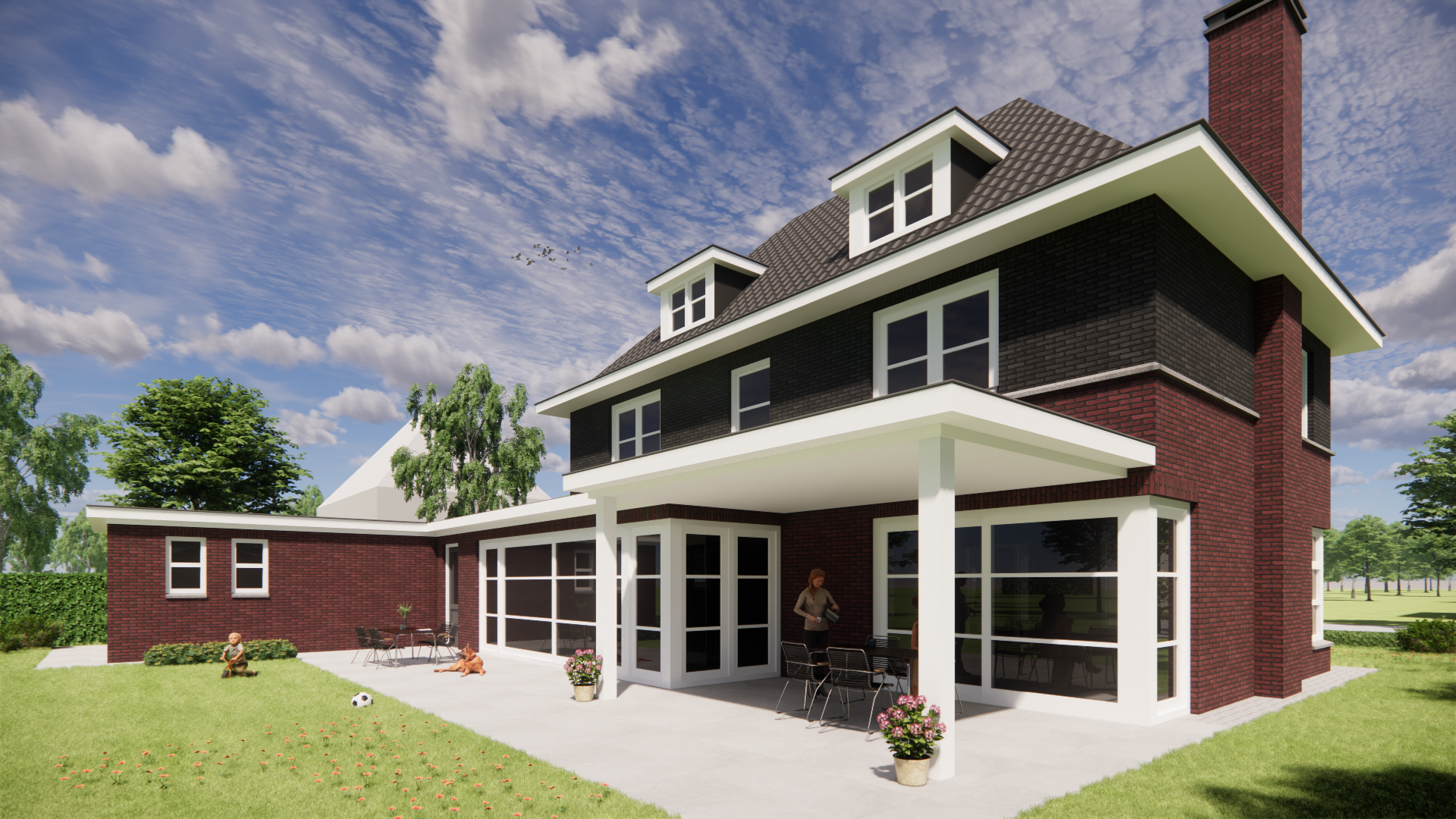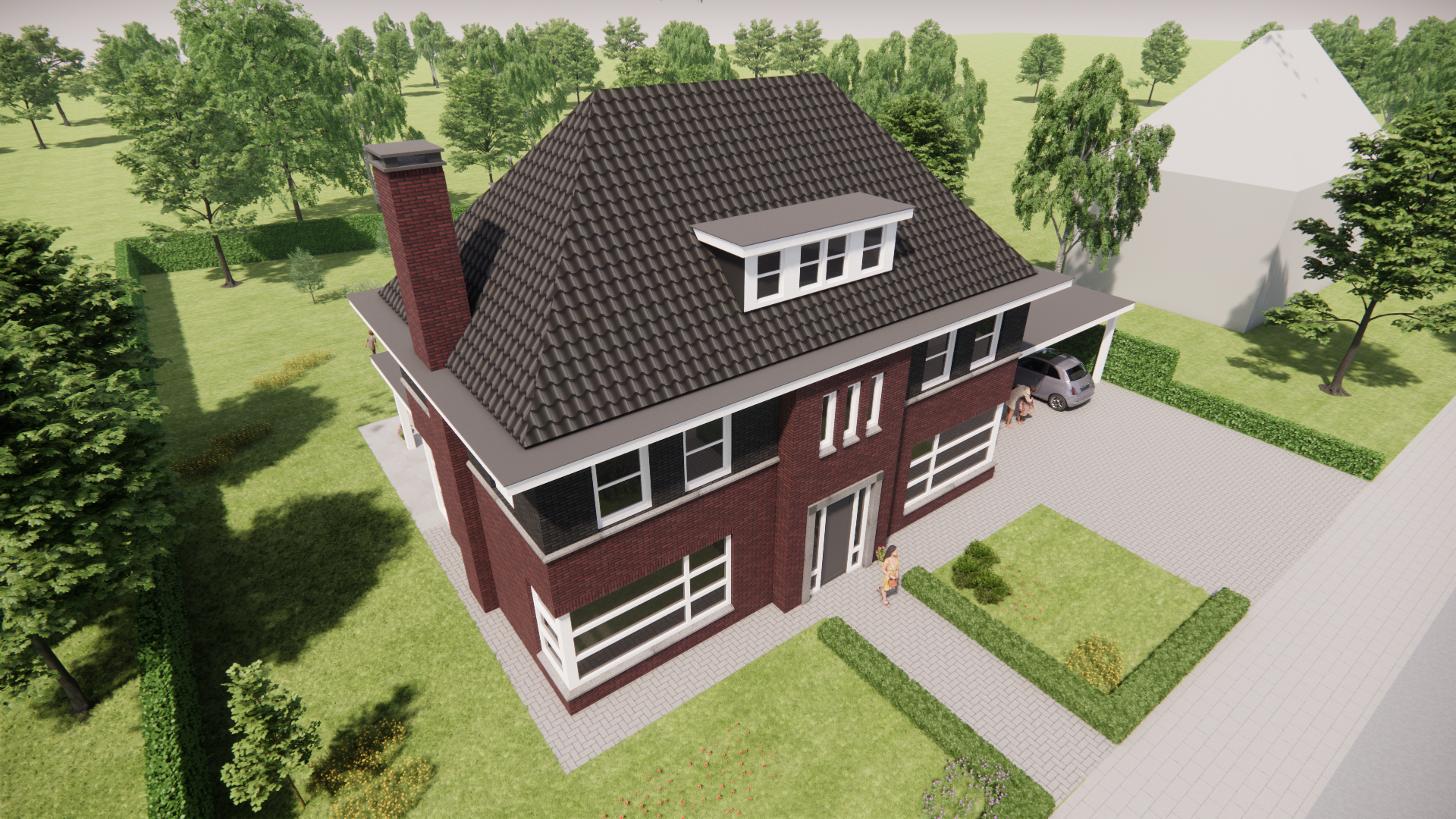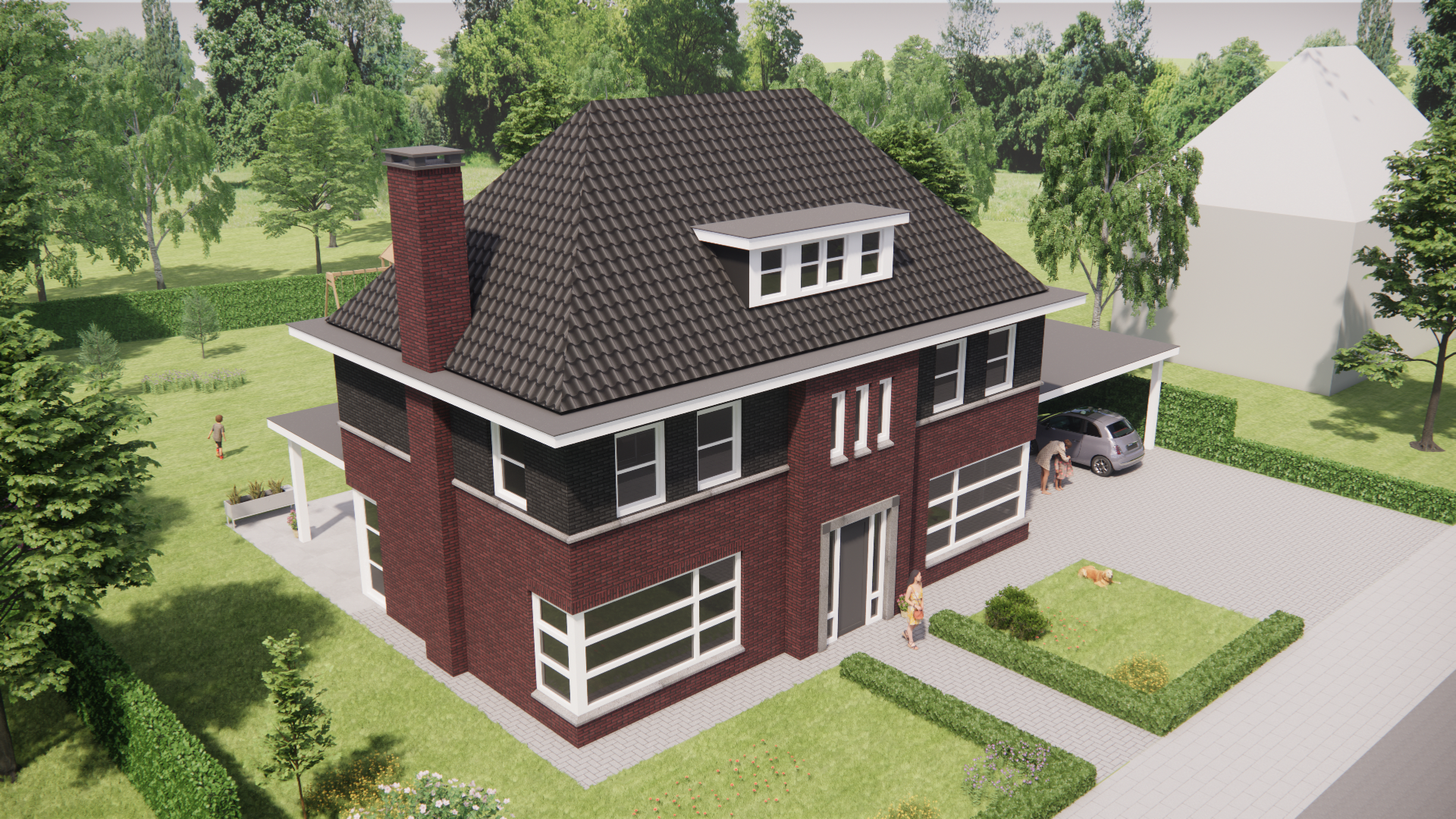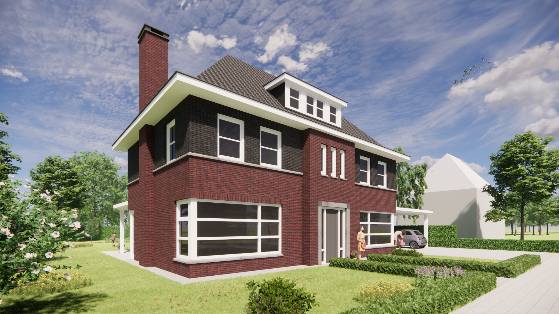 Deze nieuwbouw notariswoning ademt de sfeer van de jaren 30. Het metselwerk, het krachtige schilddak en de doordachte proporties zorgen voor een tijdloos geheel. Traditioneel gebouwd, met een warme, uitnodigende uitstraling die direct vertrouwd voelt.