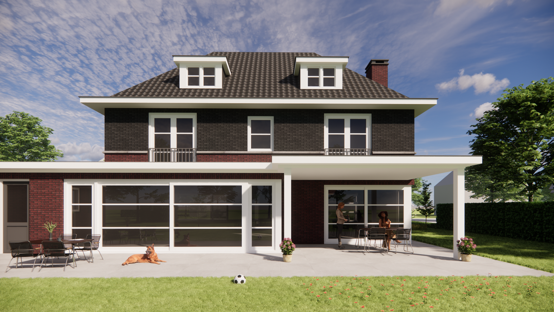 Het silhouet wordt versterkt door de schoorsteen, de dakkapel en de betimmerde goot. Het Franse balkon voegt een elegant accent toe aan de gevel. Samen vormen deze klassieke details een herkenbaar en evenwichtig beeld, tot in de afwerking overtuigend en verzorgd.