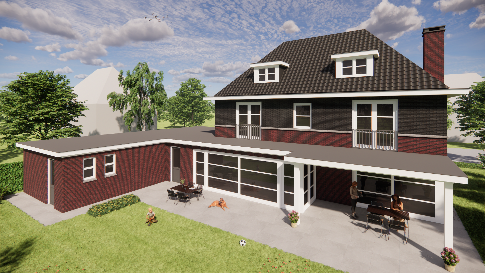 Onder de overkapping zit je beschut en toch buiten, het hele jaar door. De carport zorgt voor praktische bergruimte en een nette entree. Wil je weten hoe jouw wensen landen in een haalbaar plan? Neem contact op. We werken met een bouwteam samenwerking: vanaf moment 1 zitten de aannemer, de architect en jij als opdrachtgever aan tafel. Zo blijft het ontwerp binnen het budget en kan de aannemer het ook daadwerkelijk maken.
