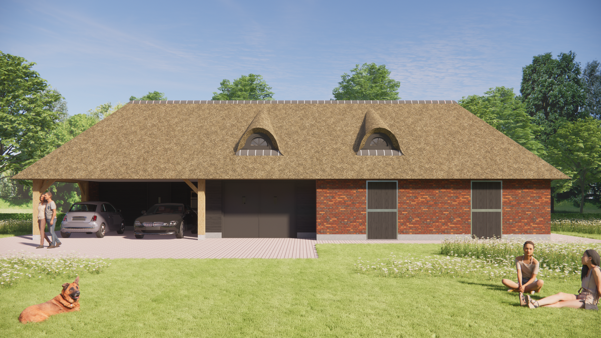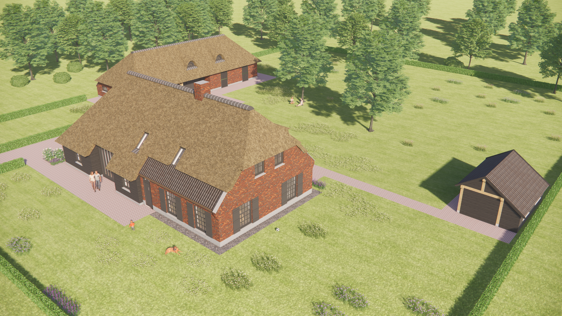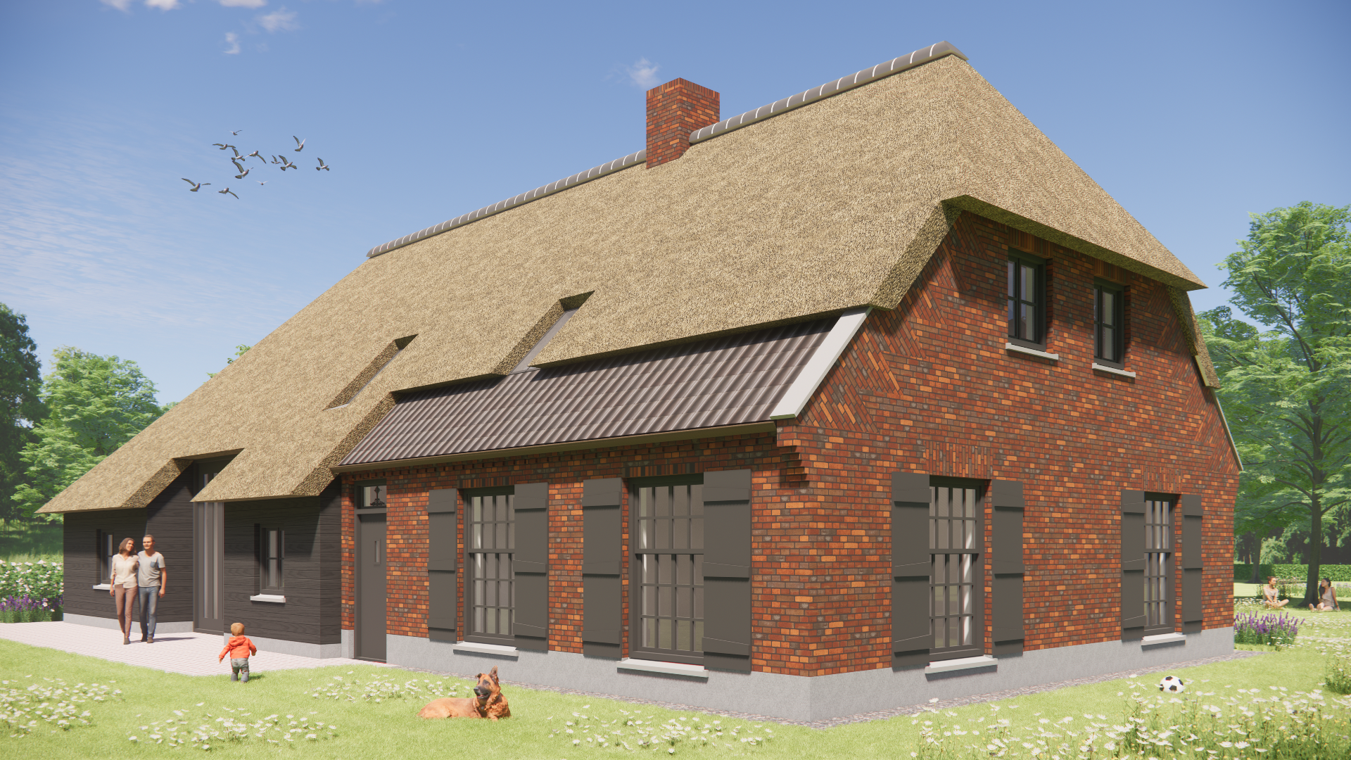 Boerderijwoning met rieten wolfsdak, houten accenten en metselwerkgevels
