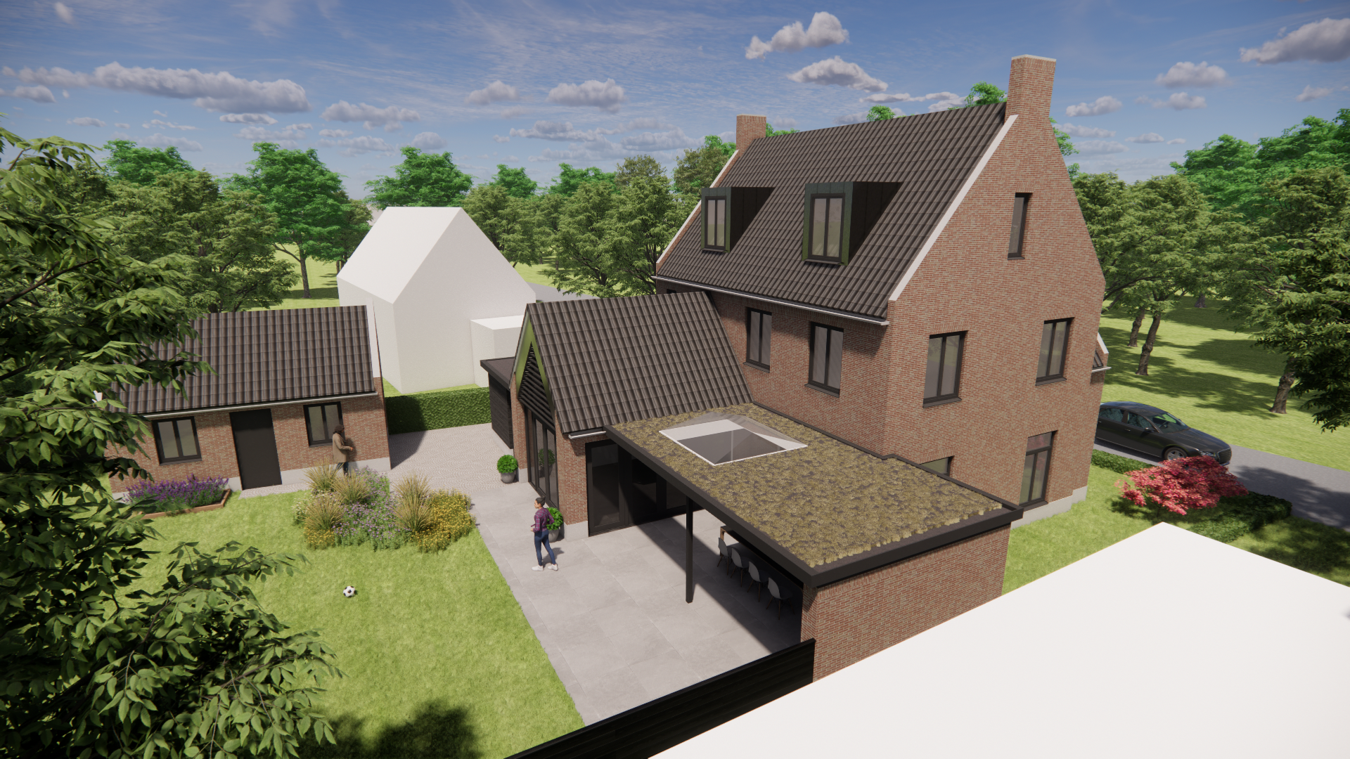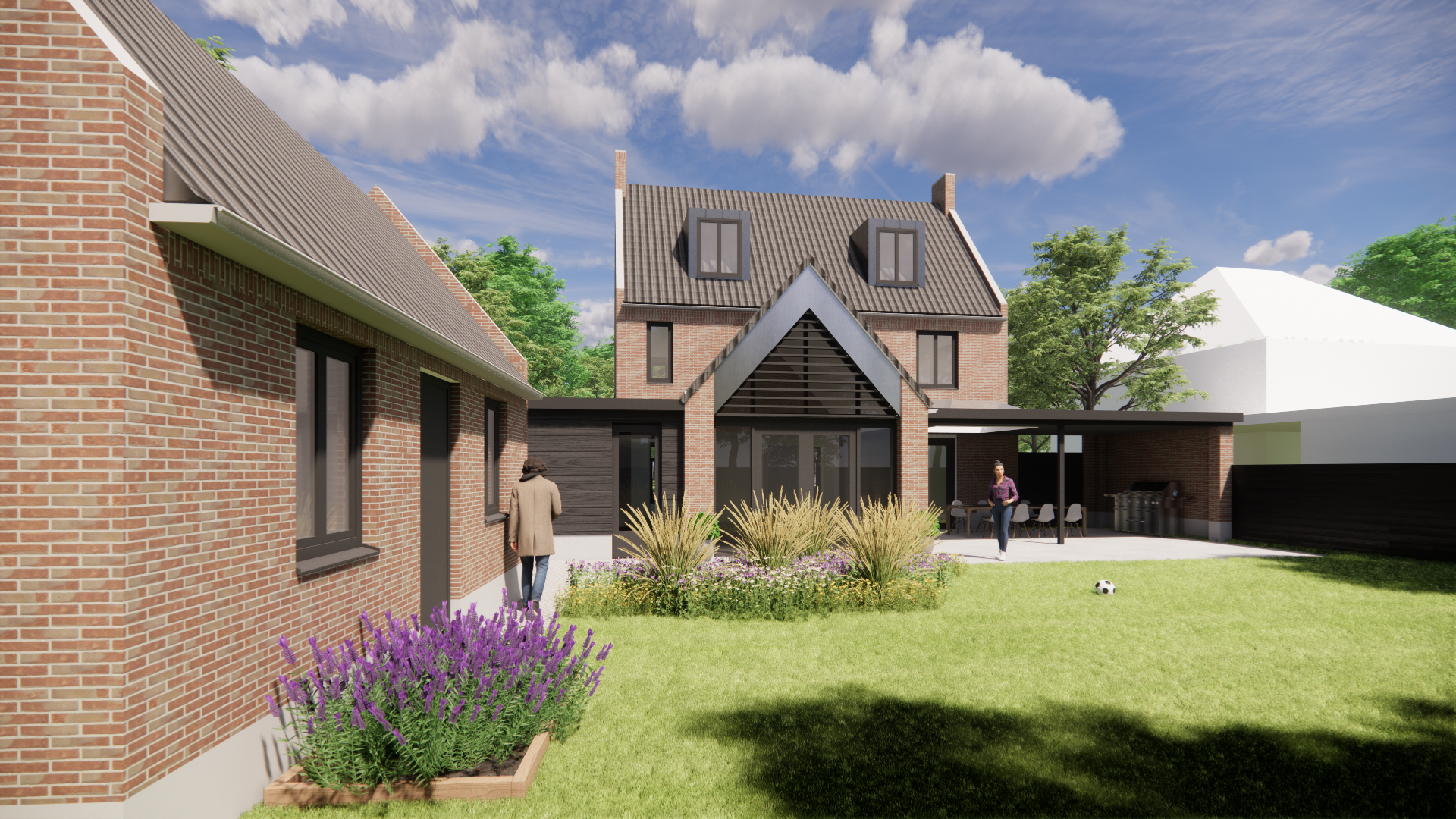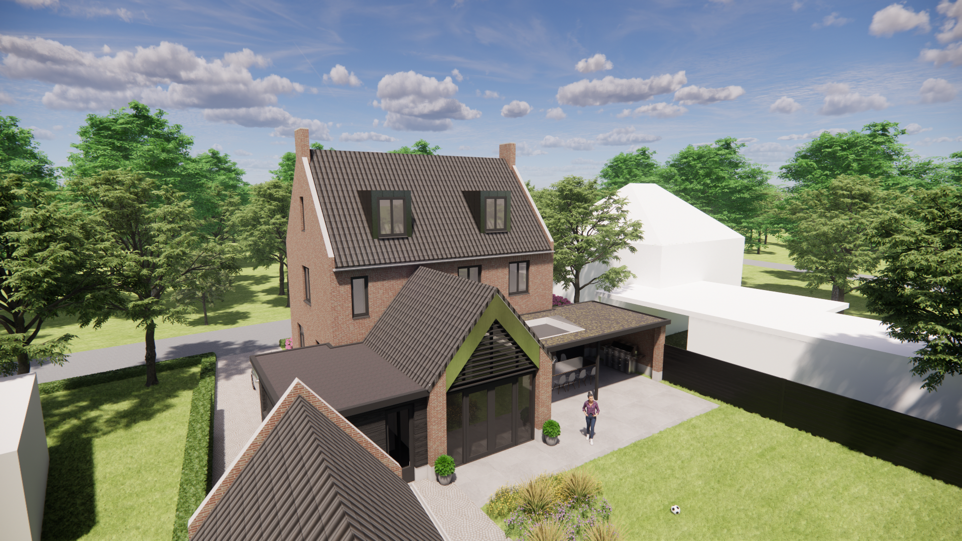 Deze nieuwbouw laat het Kempische karakter spreken. Metselwerk gevels vangen de blik, een zadeldak met gegolfde dakpannen vormt de vertrouwde kap. De dakkapel en schoorsteen geven het silhouet ritme, terwijl buiten shutters en een nette cementplint het geheel afmaken. Het resultaat is een warm en tijdloos huis, traditioneel gebouwd en duidelijk vrijstaand.