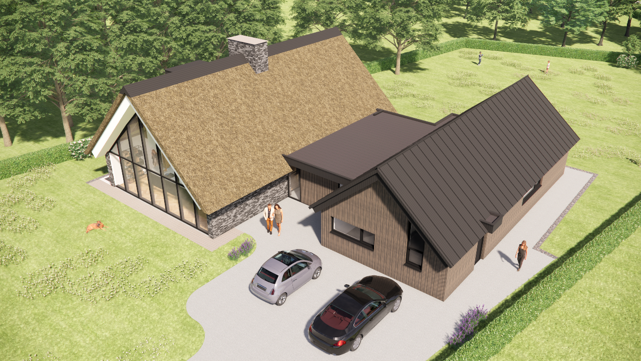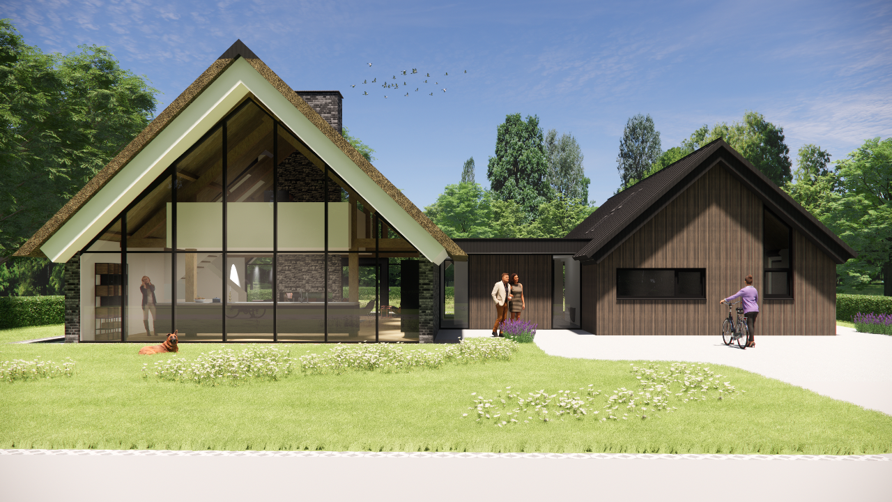 Deze villa combineert landelijke charme met een moderne, doordachte uitstraling. Het rieten zadeldak, de houten accenten en het subtiele metselwerk geven het huis een natuurlijke en warme uitstraling. De risaliet en het dakoverstek voegen karakter en diepte toe, terwijl de strakke lijnen zorgen voor een eigentijds geheel. Dankzij de traditionele bouwwijze voelt het huis solide en vertrouwd aan.