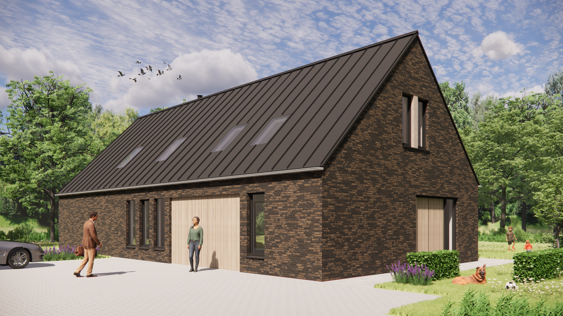 Op een ruim perceel van 875 m² staat deze eigentijdse schuurwoning: robuust in uitstraling, maar vriendelijk in sfeer. De gevels van metselwerk en hout vormen samen met het donkere felsplaten dak een krachtig geheel. Dankzij het heldere lijnenspel en het karakteristieke zadeldak oogt het ontwerp stevig en uitnodigend tegelijk. De houten balken aan de buitenzijde versterken het landelijke karakter, zonder dat het ontwerp aan eigentijdse uitstraling verliest.