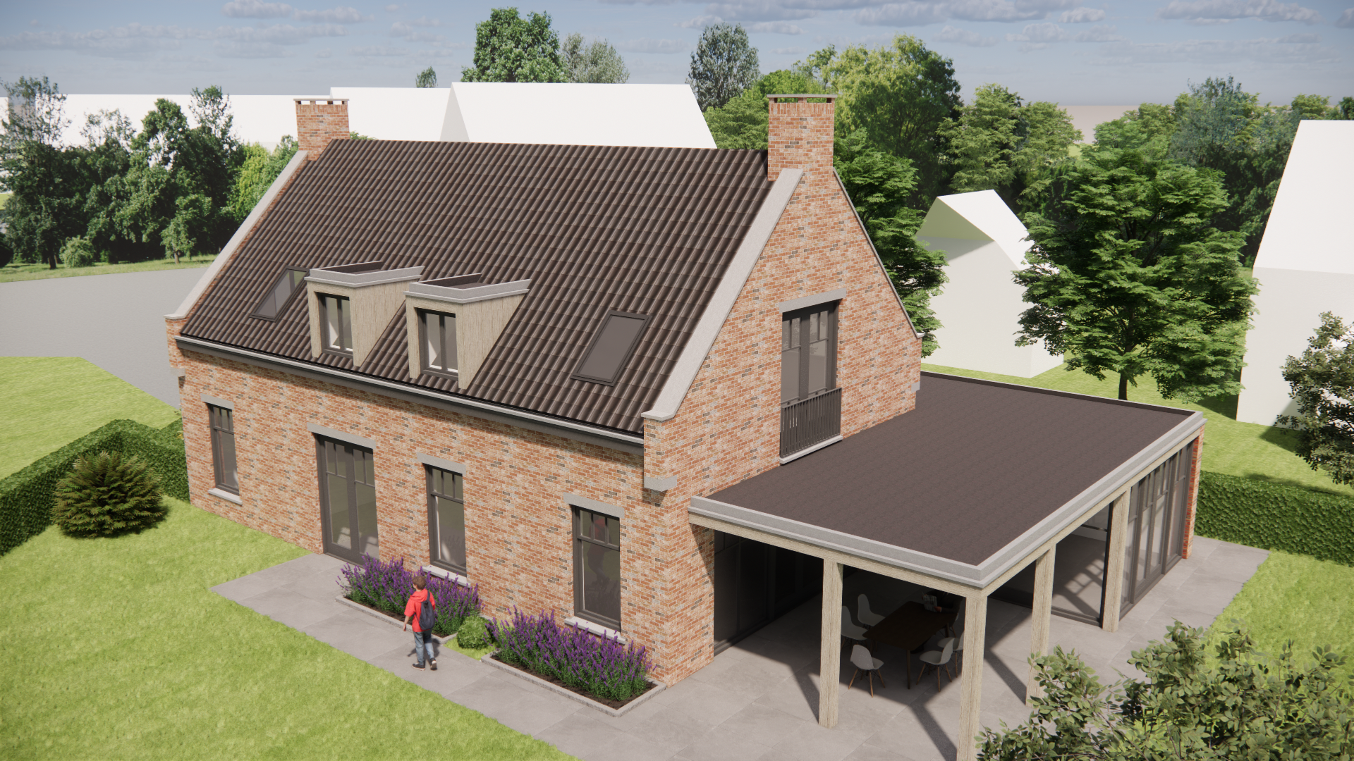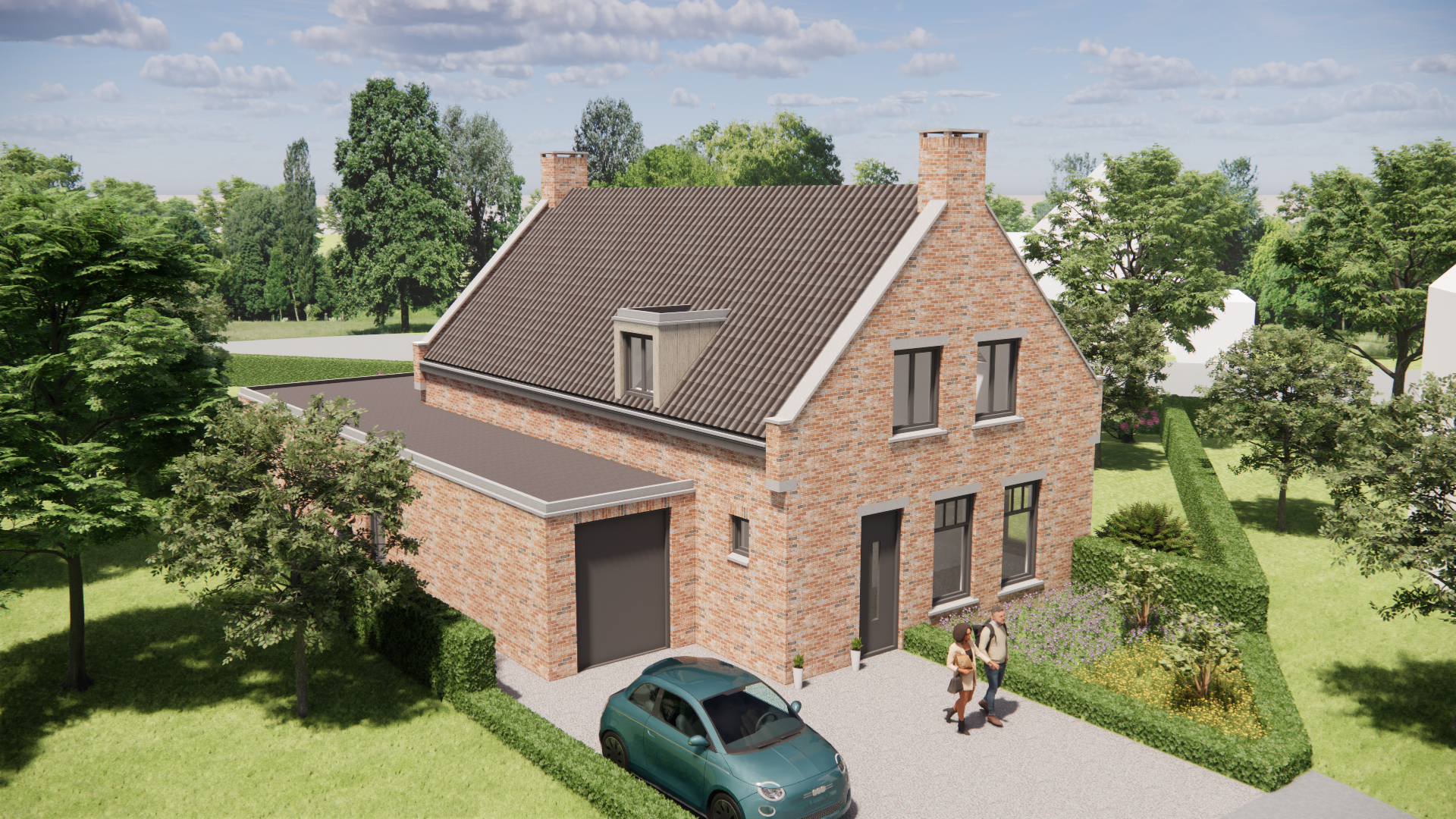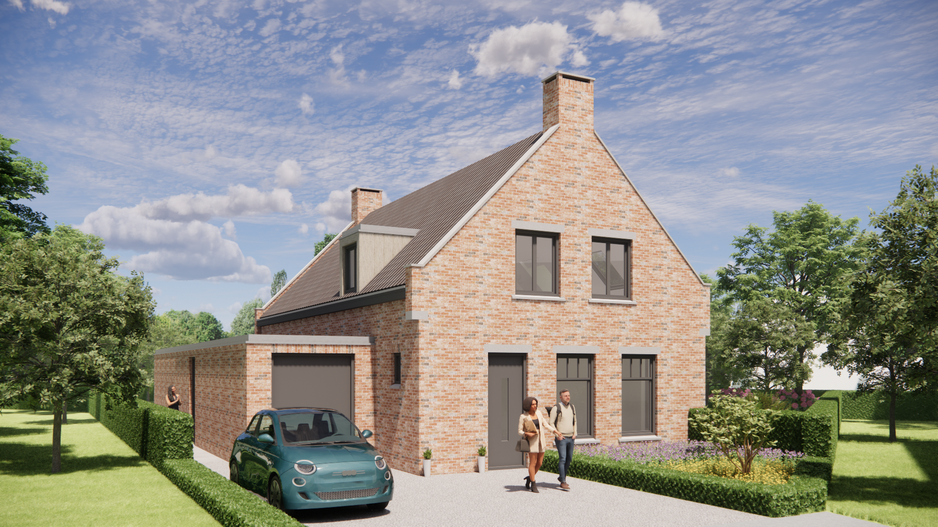 Dit nieuwbouw woonhuis ademt Kempische architectuur. Traditioneel gebouwd met metselwerk gevels en een zadeldak met gegolfde dakpannen. De verholen dakgoot en betimmerde goot geven strakke lijnen, terwijl dakkapel, schoorsteen, hoekkozijn en een Frans balkon het beeld verfijnen.