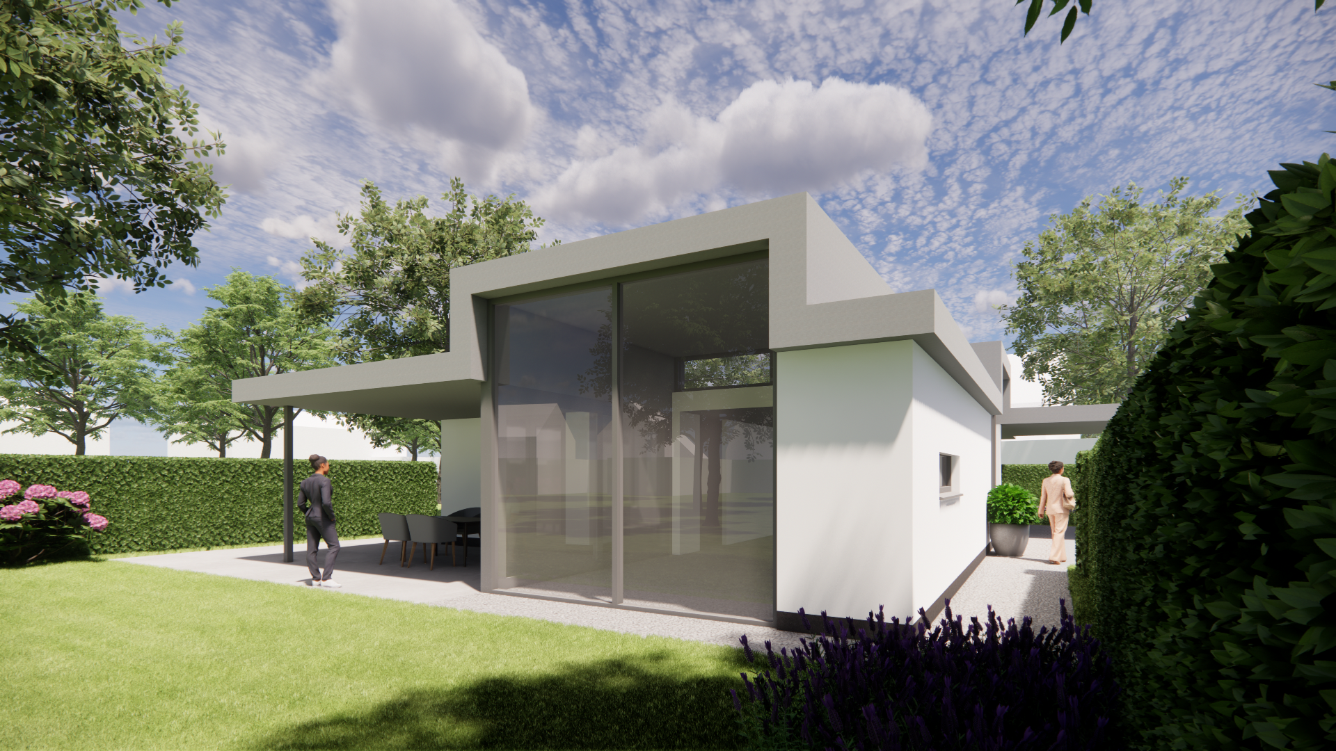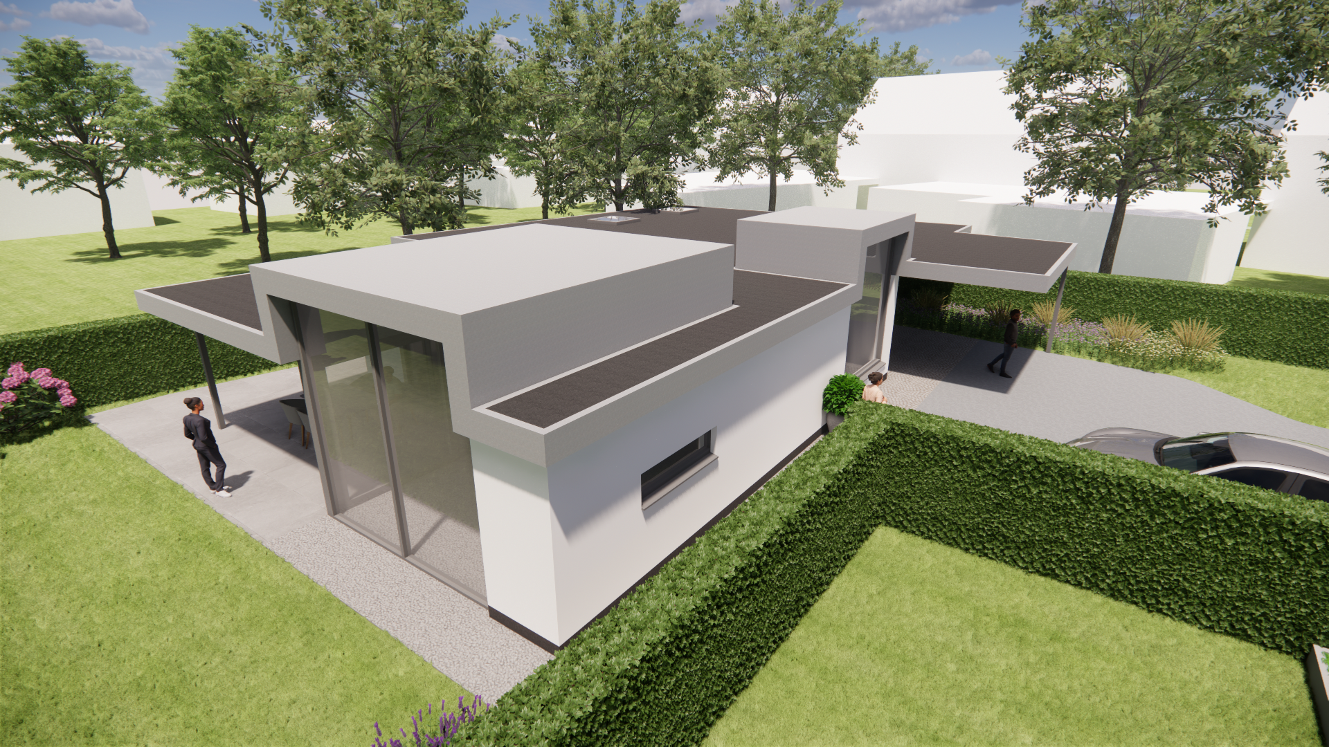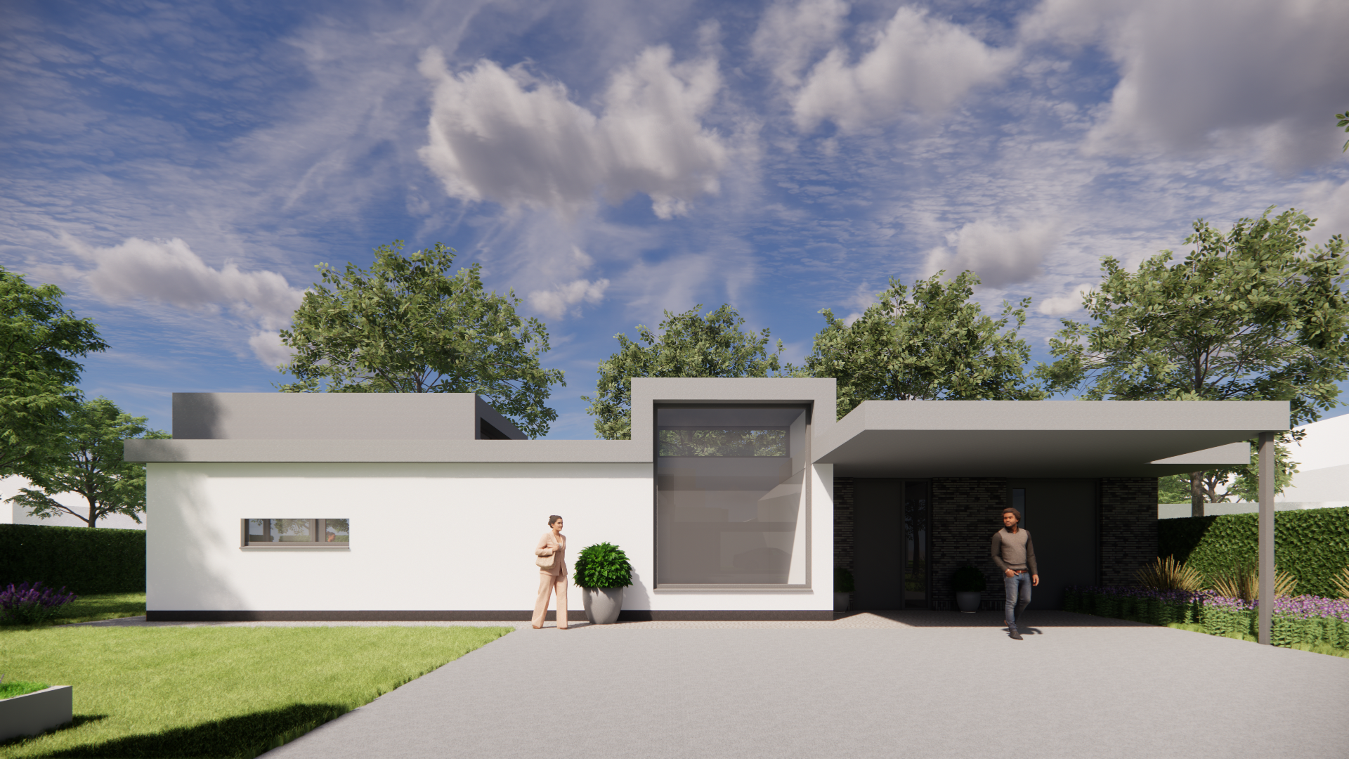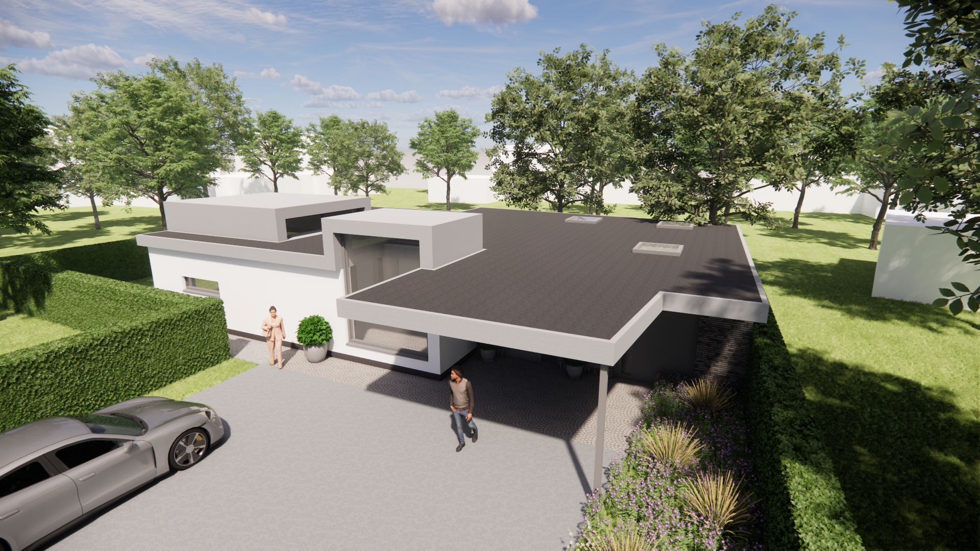 Vrijstaande kubistische woning met pleisterwerk en plat dak